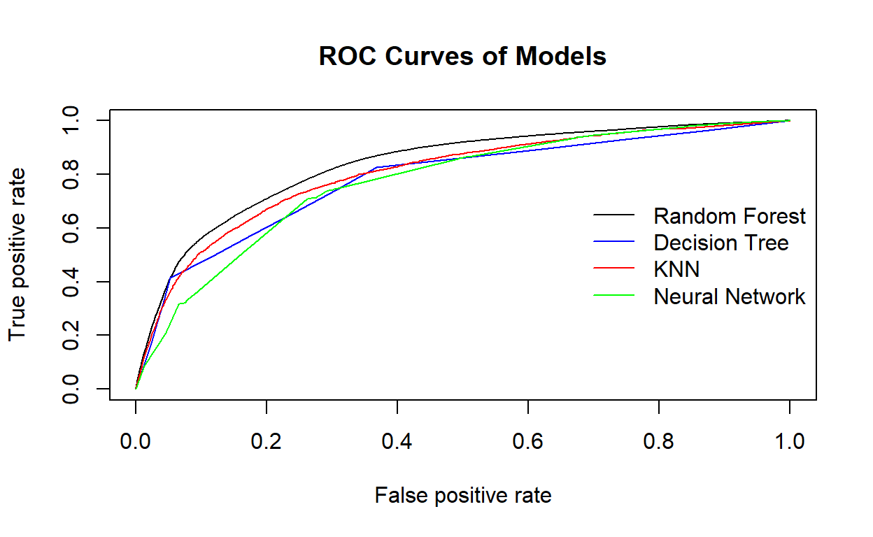 legend("right", legend = c("Random Forest","Decision Tree","KNN","Neural Network"),bty= 'n',cex = 1, lty =1,